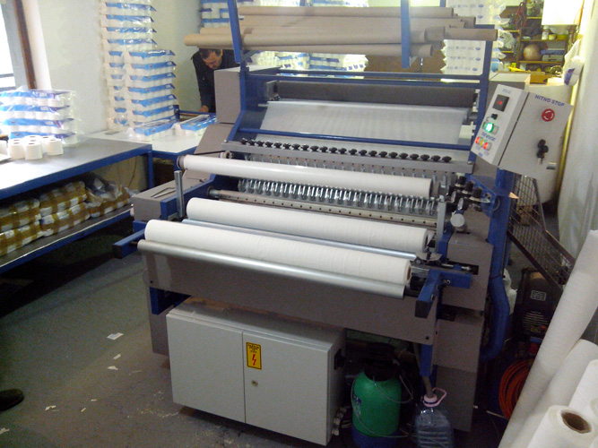 Mašina za izradu rolni toalet papira, sa automatskim nanošenjem lepka i flekso štampom u jednoj ili 2 boje. Tehničke karakteristike:.